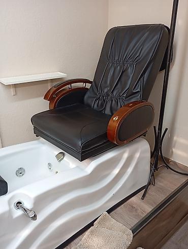 - Стационарная педикюрная станция: удобное кресло и встроенная ванна для ног.
