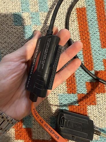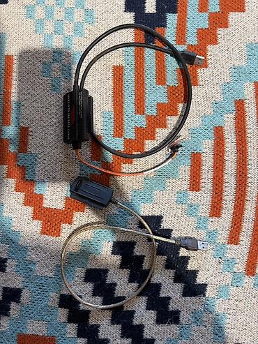 - В комплекте на фото: основной кабель-адаптер USB 3.0→IDE/SATA (черный) и дополнительный USB‑кабель с разъёмом питания/подключения (прозрачный).