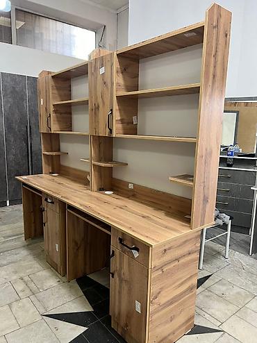 - Форм‑фактор: широкий рабочий стол с высокой надстройкой по всей длине.