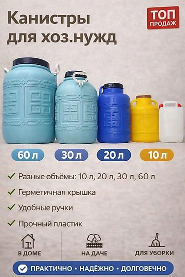 ЦЕНЫ ОТ 500 СОМ И ВЫШЕ Пластиковые емкости и бочки для воды и жидкостей Ассортимент: - Круглые бочки с широким горлом и крышкой на хомуте, объемы из линейки бытовых (под соленья, питьевую воду, тех...