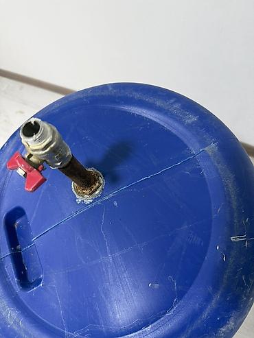 Пластиковая бочка + канистры для воды/технических жидкостей Описание: - Синяя цилиндрическая бочка из плотного пищевого/технического пластика (полиэтилен). Примерный объем 180–220 л, высота около ...