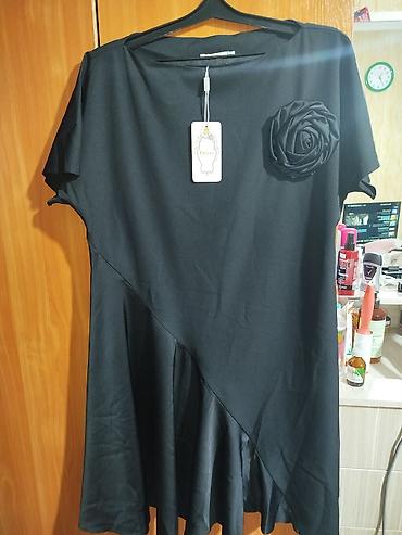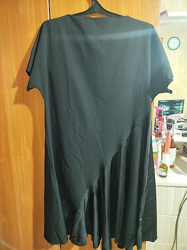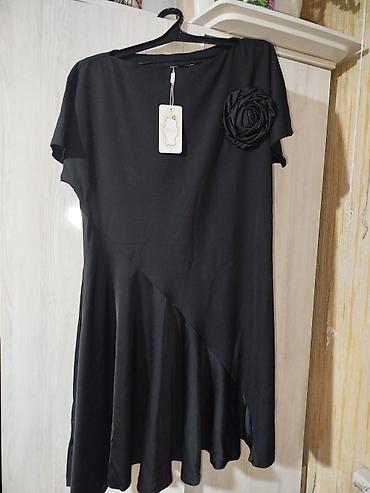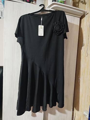 Платье черное, свободного кроя.