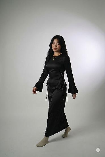 Платье макси черное с корсетной шнуровкой по бокам - Длина: макси. -