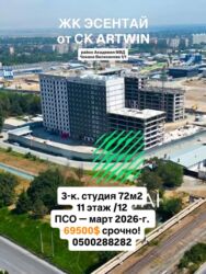 3-к. квартиру в студию в ЖК “ЭСЕНТАЙ” от топовой строительной компании АртВин. 11 этаж /13.