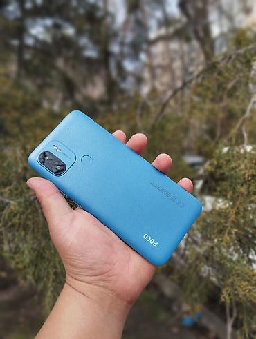 Смартфон POCO (серия C) в голубом цвете.