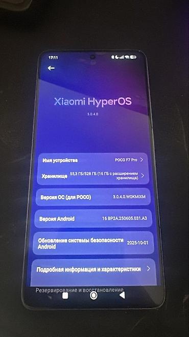 POCO F7 Pro — смартфон на Xiaomi HyperOS 3.0.4.0 (Android 16).