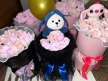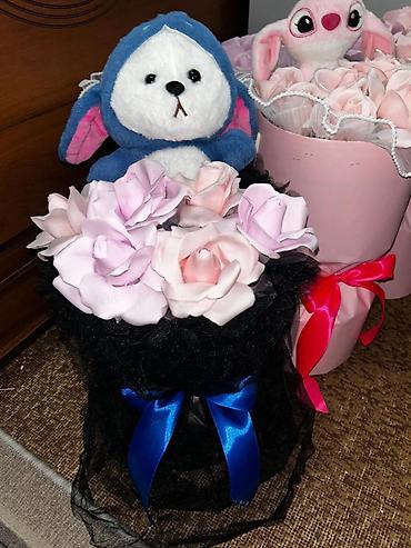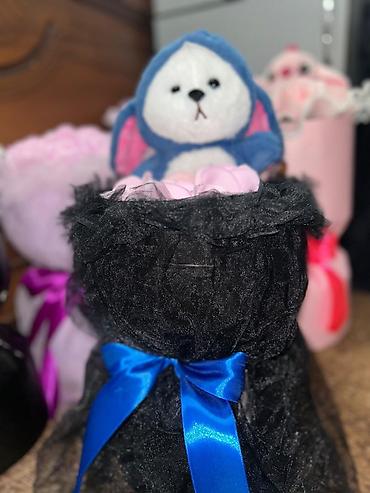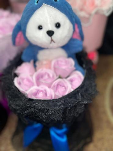 - Комплектация: коробка с бантом, набор роз, мягкая игрушка внутри.