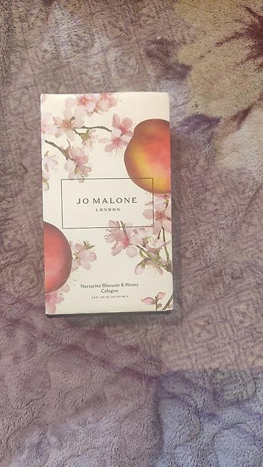 - Jo Malone London Nectarine Blossom & Honey Cologne — коробка от колogne 100 ml (3.4 fl.oz) с нежным цветочно‑фруктовым принтом персикового цвета и фирменным логотипом. Название аромата: Nectarine Blossom & Honey.