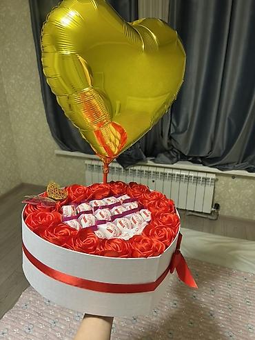 Идея для дня рождения, годовщины, 8 Марта, Дня святого Валентина, признания в любви и поздравлений коллегам и близким. Можно подобрать размер, форму сердца или круга, оттенки роз и наполнение конфетами под вкус получателя.