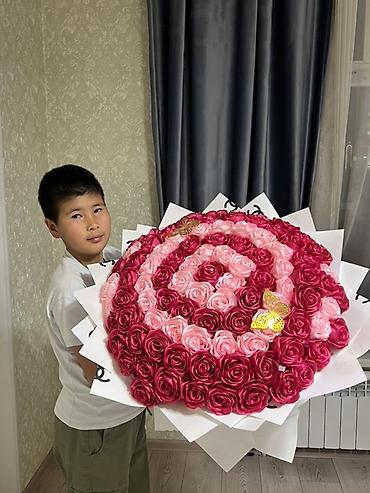 - Эффектный большой букет из множества атласных роз для впечатляющего вручения.