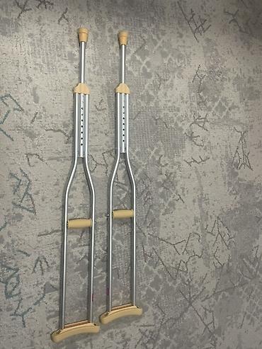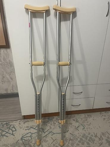 Подмышечные костыли, пара. Новые, купили, но не прнадобились. - Материал: легкий алюминиевый сплав. - Регулировка по высоте: телескопические стойки с рядами отверстий и фиксаторами; подходит польз...