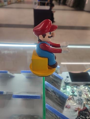 - Фигурка героя в красной кепке с логотипом «M», сидит на жёлтом блоке-вопросе.