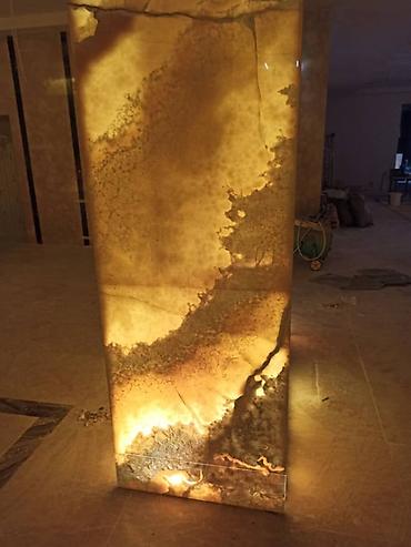 Подсвечиваемые панели из натурального оникса для облицовки колонн