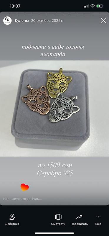 - Леопард — ажурная подвеска в виде головы леопарда, три цвета покрытия (золото, розовое, серебро). Цена: 1500 сом.