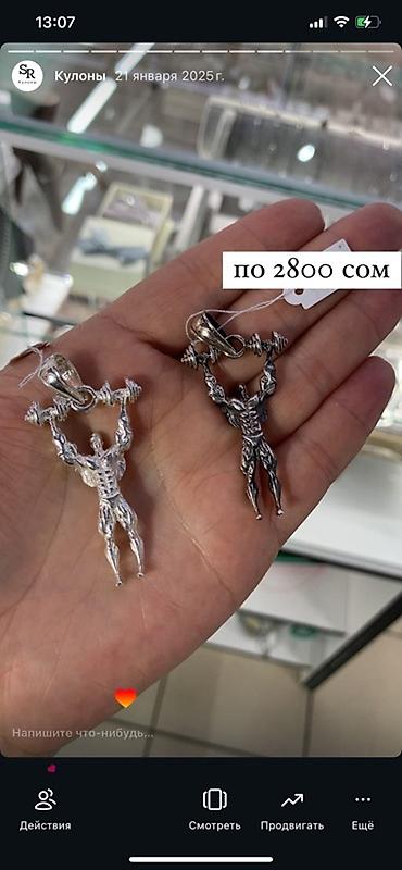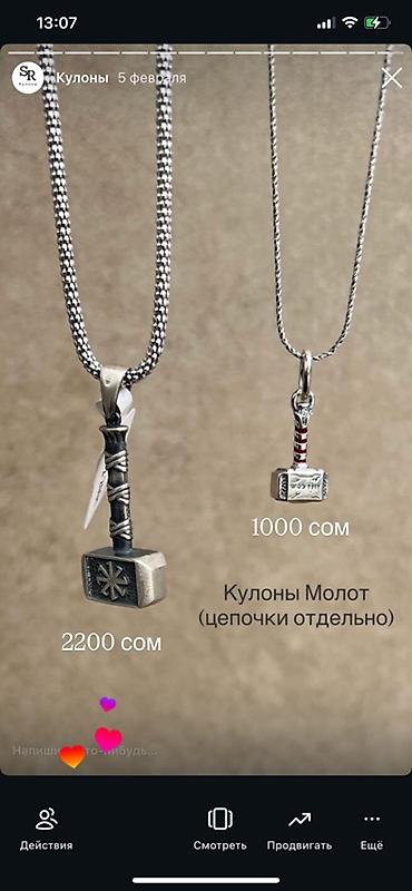 - Кулоны «Молот» — два размера; цепочки приобретаются отдельно. Цены: 2200 сом (крупный) и 1000 сом (малый).