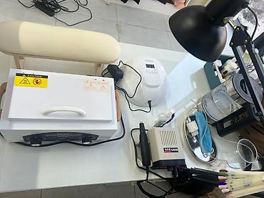 Это готовое рабочее место мастера: инструменты для аппаратного маникюра, стерилизации, лампа для сушки, материалы для наращивания и дизайна, одноразовые расходники и палитры цветов. Есть все необходимое для начала и ведения работы.