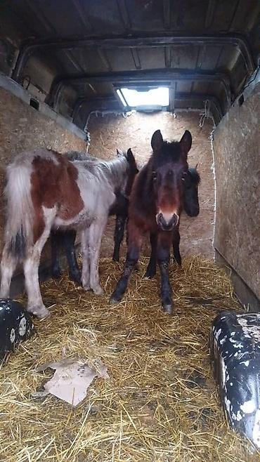 На выбор молодые лошади (жеребята) темной и рыжей масти. Основные характеристики: - Масти: вороная с небольшой отметиной на лбу; рыжая (две особи на фото). - Возраст: молодые, еще растущие (подход...