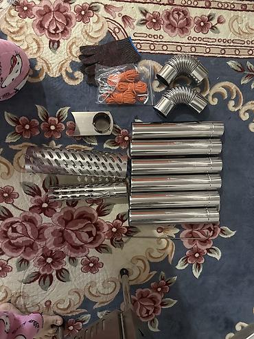 - Дымоход: несколько прямых секций, две гибкие/коленные вставки, искрогаситель/теплозащитная перфорированная труба.
