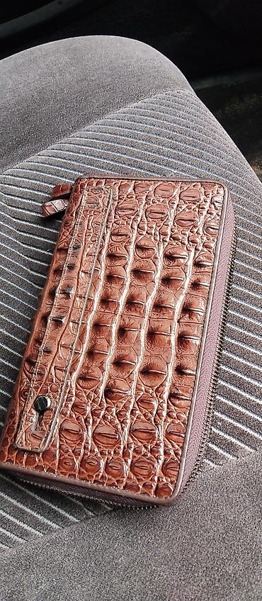 Портмоне-органайзер на молнии, коричневое, с тиснением «под крокодила». настояшяя кожа кракодила