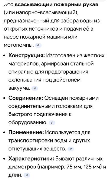 - Жесткий прозрачный рукав для забора воды из открытых источников и подачи её в насос пожарной машины или мотопомпы.