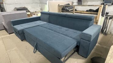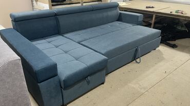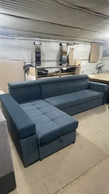 - Ткань: мягкая износостойкая обивка синего цвета, визуально напоминает велюр/микрофибру, с декоративной строчкой.