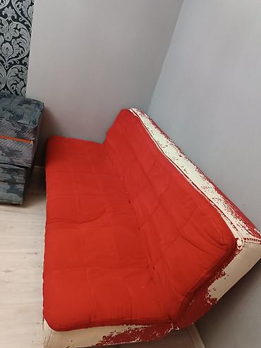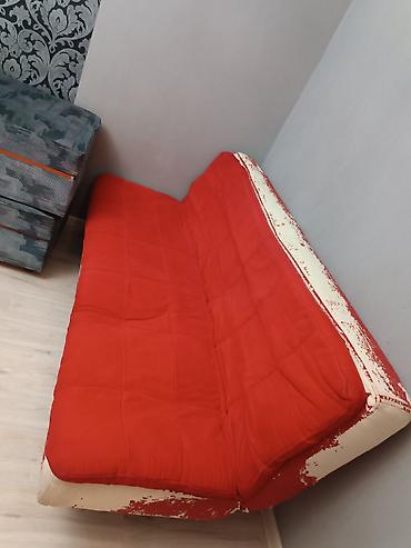 Компактный раскладной диван-кровать в насыщенном красном цвете. - Тип: диван-клик-клак/раскладной диван - Посадочных мест: 2–3 - Спальное место: раскладывается в ровную поверхность для сна - Компл...