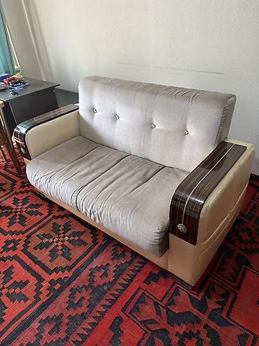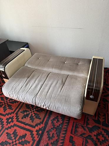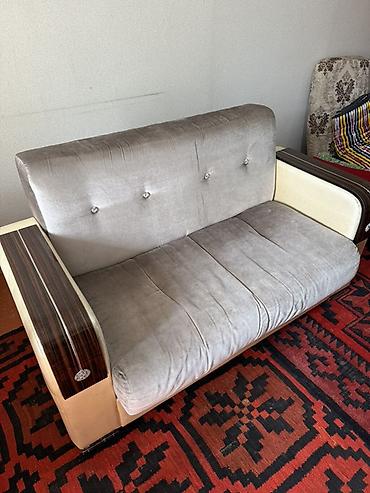 Г. Кара-Балта Компактный раскладной диван с ящиком для белья. - Тип: двухместный диван-кровать. - Механизм: выкатной/раскладной; спальное место формируется из сиденья и выдвижной секции (ручки дл...