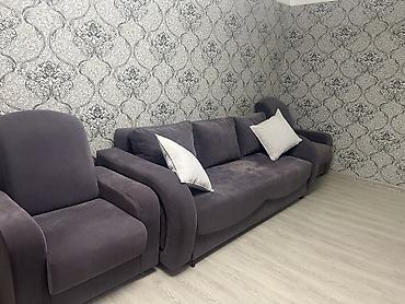 Продаю набор мягкой мебели: диван и два кресла, диван раскладывается, б/у, в отличном состоянии. 80 000 сом, торг уместен.