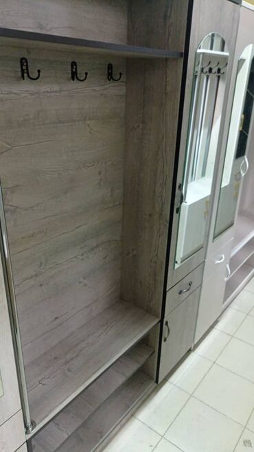 Прихожие модульные из ЛДСП ширина 1.20 высота 1.90 - Комплектация: открытые ниши для верхней одежды, полки для обуви, тумбы и выдвижные ящики, секции с распашными дверцами, зеркало в полный рост на...