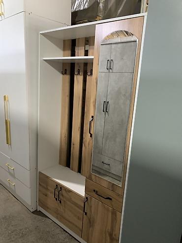 - Материалы: ЛДСП с кромкой, износостойкие декоративные покрытия; металлические крючки; зеркальное полотно.