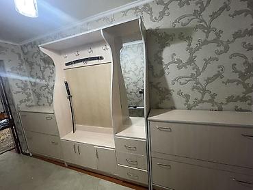 - Боковой модуль с большим зеркалом в полный рост и тумбой с тремя выдвижными ящиками.