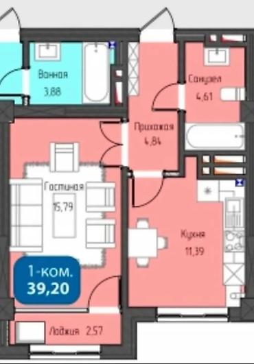 • 1 комната, 39 м², Элитка, 9 этаж, Готовая ПСО (под самоотделку)