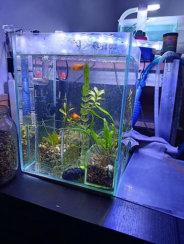 Продается аквариум на 15 л со всем содержимым оборудование рыбки и