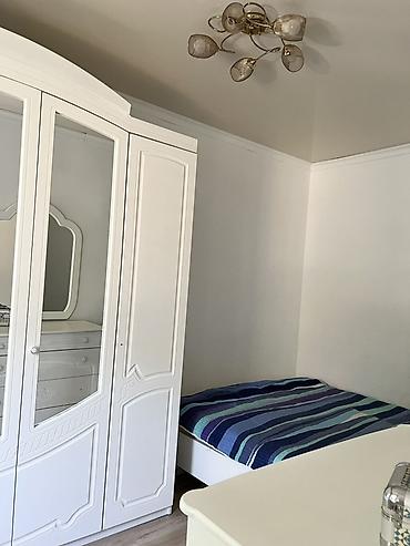 - Планировка: светлая комната с двуспальной кроватью, большим трехдверным шкафом с зеркалом, комодом и прикроватной тумбой.