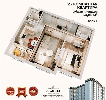 Продаётся полноценная 2-х ком квартира в жилом комплексе "Семетей" от Мунарастрой - Все коммуникации центральные. Центральное отопление, газ. Красная книга - 5 этаж из 12. Окна смотрят на юг. В...