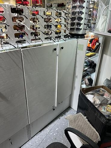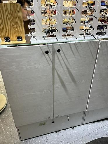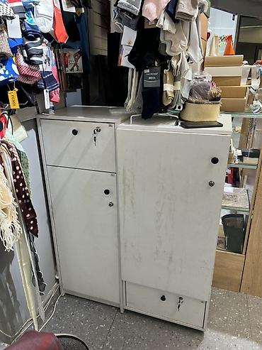 - Закрывающиеся шкафы-тумбы с полками и выдвижными ящиками для запаса товара; на дверцах установлены замки, в комплекте ключи.
