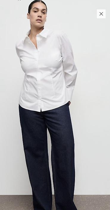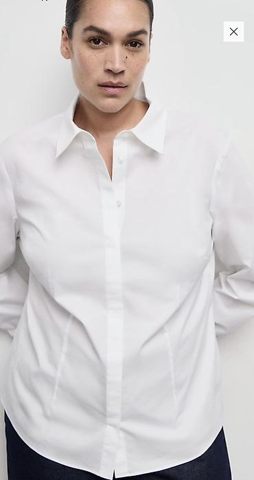 Белая классическая рубашка - Модель: прямой силуэт, стандартная длина, боковые разрезы по низу - Застежка: на пуговицы по планке спереди - Воротник: классический отложной - Рукава: длинные, манжет...