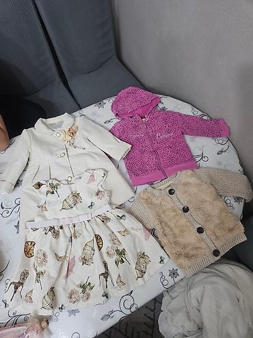 Продам вещи в хорошем состоянии. Размер 1-1.5 года. Произв- во Турция Пекин. Цена: кофточки по 400 сом за кажлую, платье пальто 600