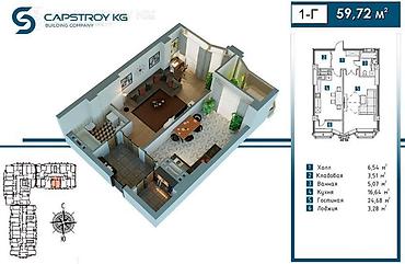 1 комната, 60 м², Элитка, 13 этаж, ПСО (под самоотделку)