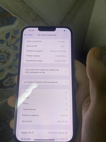 Продам iPhone 13 Pro Max 512 Gb «Графит» iOS 18.3.2 (22D82). Телефон личного пользования, в хорошем состоянии. Емкость батареи 79%. Не вскрывался, в воде не плавал.