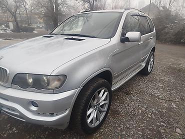 BMW X5 (E53), черный SUV. Основные особенности: - Кузов: 5‑дверный кроссовер, черный цвет, рейлинги на крыше, боковые подножки. - Оптика: фирменные «ангельские глазки», противотуманные фары. - Кол...