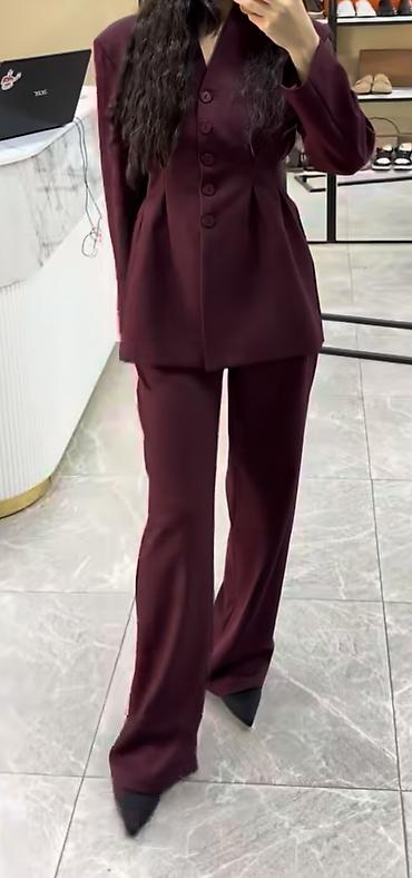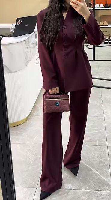 Женский костюм с жакетом-пеплум и прямыми брюками - Силуэт