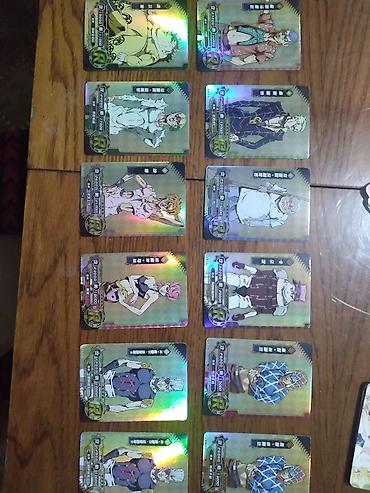 Джоджо (коллекционные карты)- ранг R- 15 сом одна карта, ранг SR-20 сом одна карта, ранг SSR-30-35 сом (единственная!), . Май литл пони-5 сом за одну карту, все 6 карт за 20 сом
