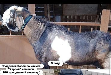 казел нубийской породы возраст полтора года Описание: - Окрас пёстрый: рыже-коричневый с крупными белыми отметинами. - Голубые глаза, свисающие уши. - Плотное телосложение, хорошо выраженная муску...