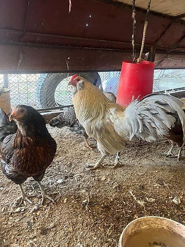 Петухи породного типа (смешанные кроссы), взрослые. - Окрас: белый с черными маховыми перьями и хвостом; рыжий с черными крыльями и хвостом; есть черный с красным гребнем. - Крупные, высокие, с в...