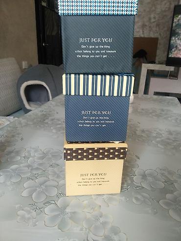 Коробочки для украшений! Размер 7 на 7 осталось 52 шт по 18сомов Размер мини 3,5 на 3,5 осталось 46 по 10 сомов. Также есть пузырчатая пленка-1 рулон за 200 сомов