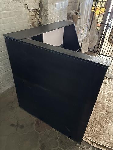 Стойка ресепшн/кассовый модуль для магазина, салона или шоурума - Форма: угловая (Г-образная), фронтальная часть — сплошная панель с чистой геометрией. - Цвет: матовый чёрный — универсально смотри...