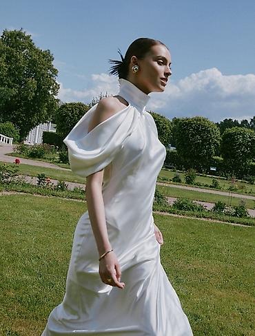 ВЫПУСКНОЕ Вечернее платье в пол из атласной ткани Один выход