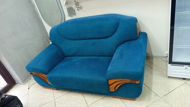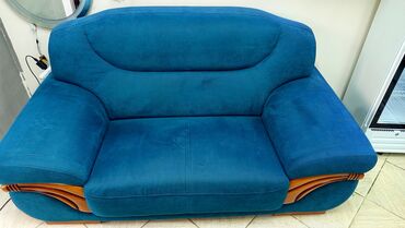 Двухместный диван в насыщенном бирюзово‑синем цвете.
