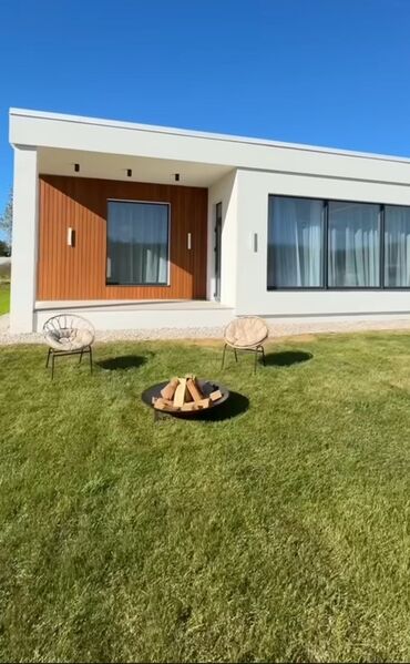 - Функционал участка: перед домом — площадка для кострища/зоны отдыха на газоне.